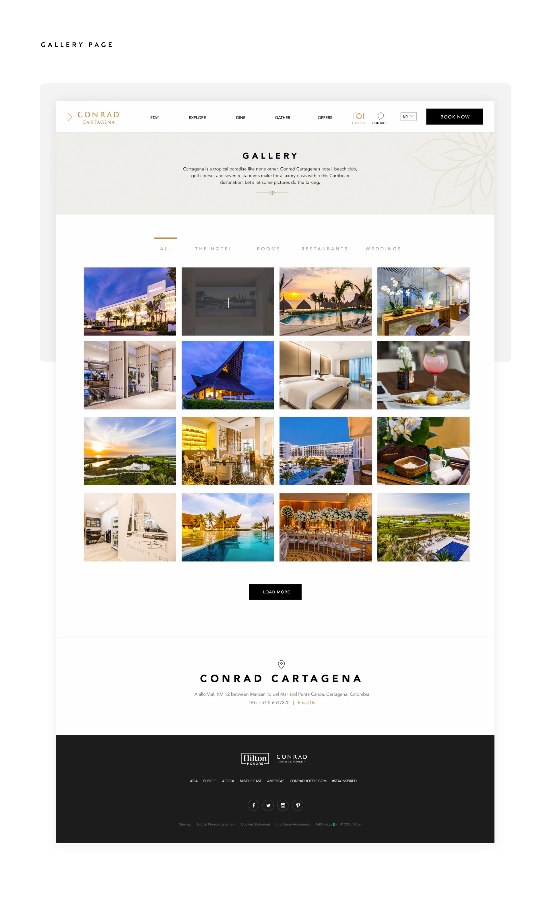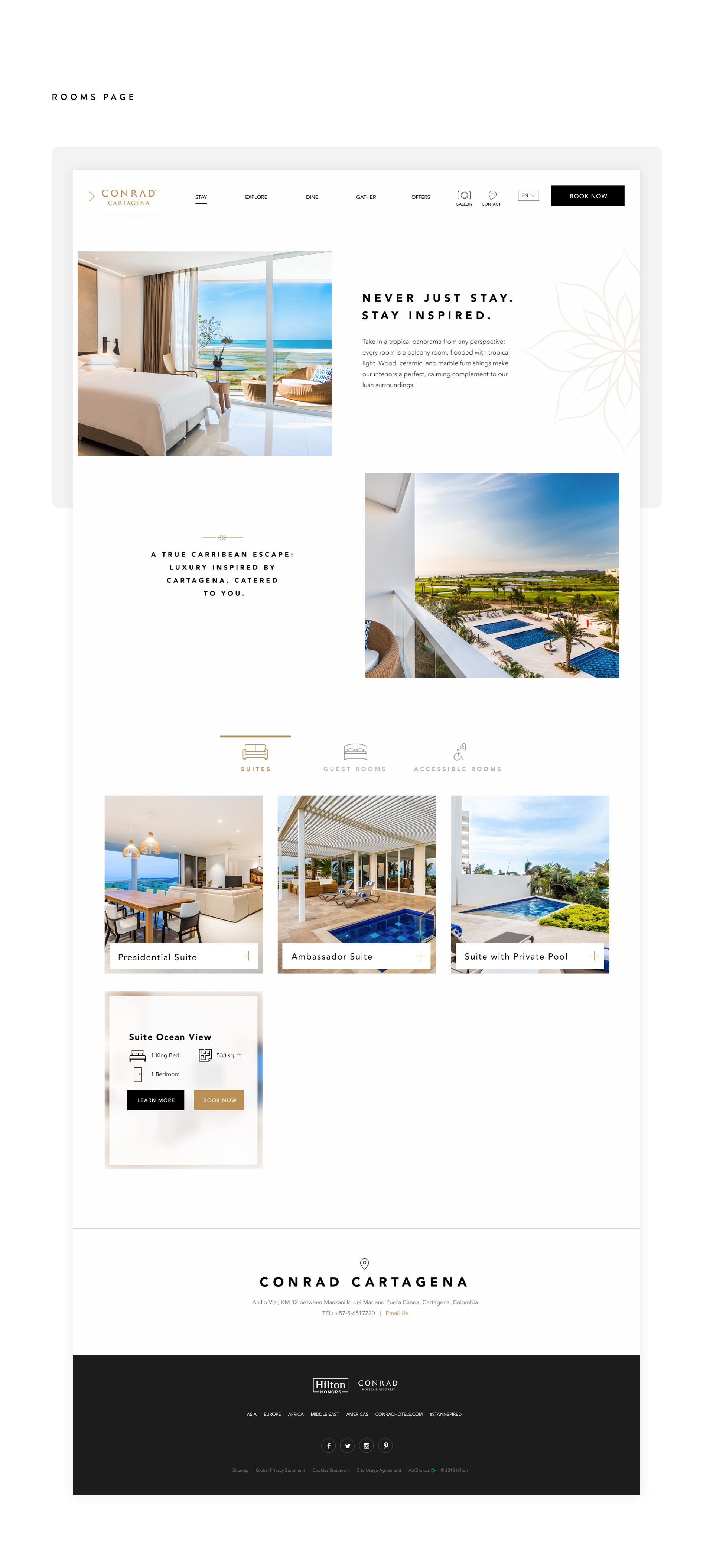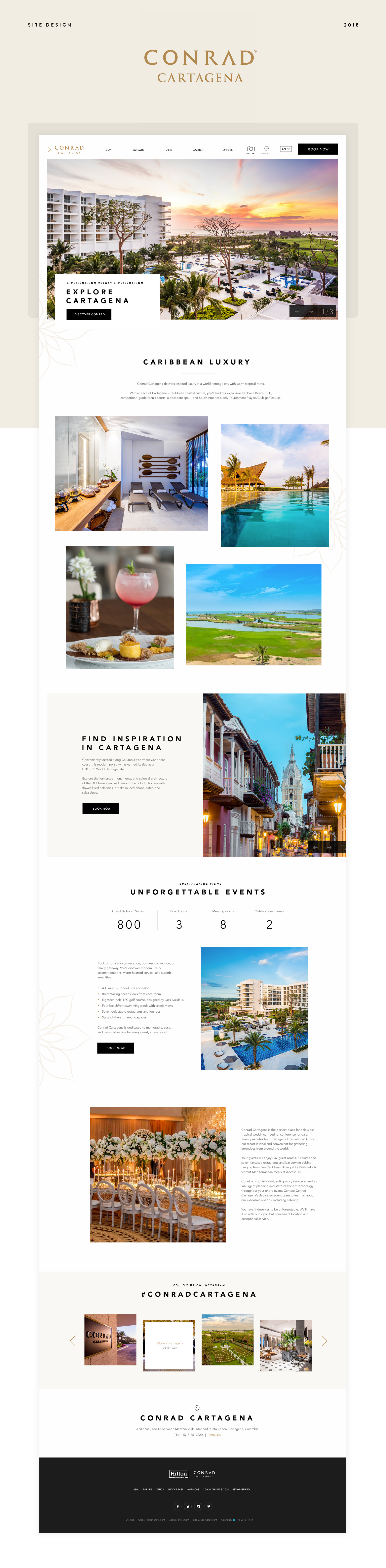 My role was to lead and design the new Conrad Cartagena Resort site. The design reflects the mood of the resort while merging elements from the port city of Cartagena's lifestyle and history.